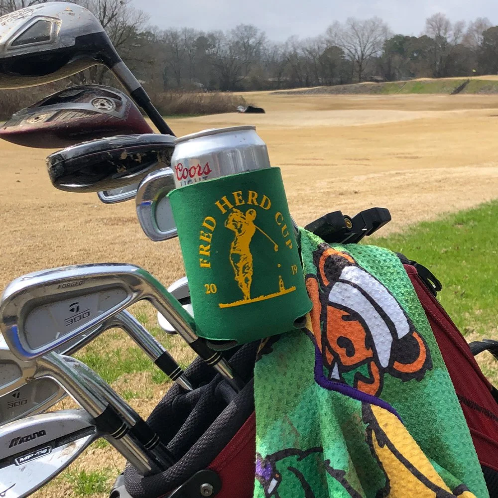 The Fred Herd Cup is an annual golf outing organized by my brother and me. It began with a modest attendance of 12 participants in its inaugural year, and since then, it has expanded to accommodate a gathering of 30 individuals. As the Creative Director of this esteemed event, I am responsible for conceptualizing and executing designs for various collateral such as apparel, koozies, posters, and invitations, ensuring a cohesive visual identity throughout.